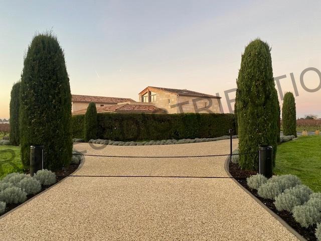Barrière à chaîne hydraulique de 5 mètres avec habillage sur-mesure - Entrée Château Ripeau (33)